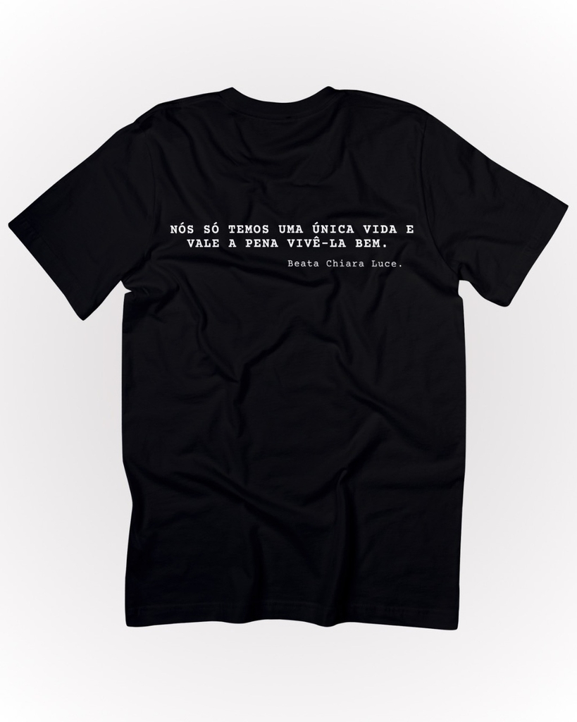 Com um design impactante que traz uma mensagem de reflexão sobre a vida, a T-shirt "Nós só temos uma única vida" vai além de uma simples peça de vestuário; é uma maneira de expressar suas crenças e inspirações. Vista-se com propósito e compartilhe sua visão de viver intensamente.